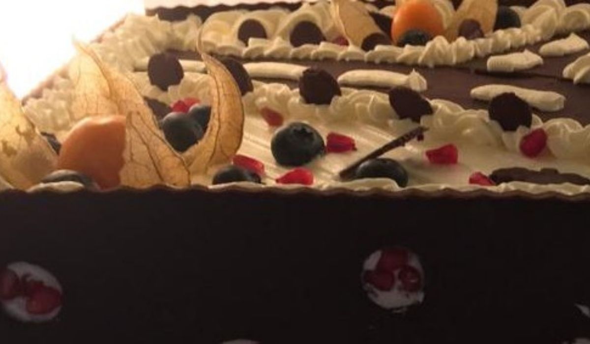 Se ține la rece o zi, apoi se detașează forma de tort și se ornează cu frișca și ciocolată.